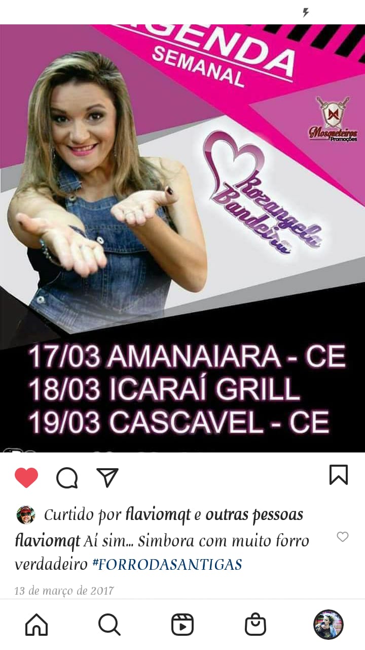 O COLETIVO ROZÂNGELA BANDEIRA E BANDA SURGIU EM 2008 DESDE QUE A VOCALISTA SAIU DA BANDA PAINEL DE CONTROLE E DECIDIU INVESTIR EM CARREIRA SOLO. COM PRODUÇÕES E APRESENTAÇÕES EM TODO TERRITÓRIO CEARENSE, COM UM REPERTÓRIO DIVERSIFICADO DE MUSICA POPULAR BRASILEIRA E REGIONAL. APRESENTANDO EM EVENTOS COORPORATIVOS, BARZINHOS, BARRACAS DE PRAIA, EVENTOS JUNINOS, FESTAS PARTICULARES, CARNAVAIS, ETC.Vídeos